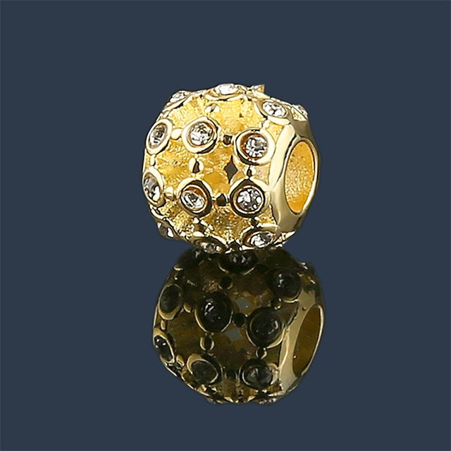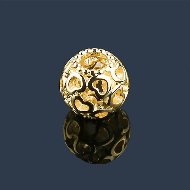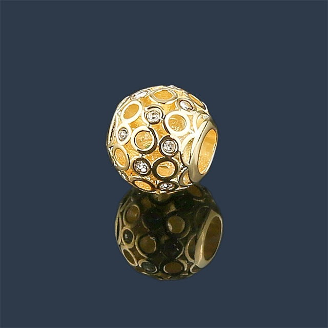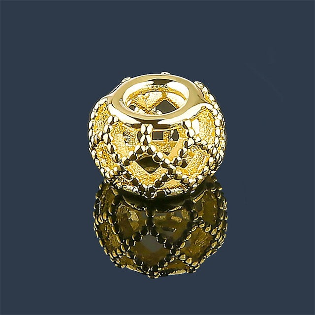 Fashionable 12mm hollow out DIY beads fit for pandora bracelet and necklace with a material of 18K gold plated charms. From a famous brand and European style. Perfect gift for occasions like valentine's gift, birthday gift, friends gift and to your loved one.