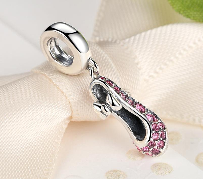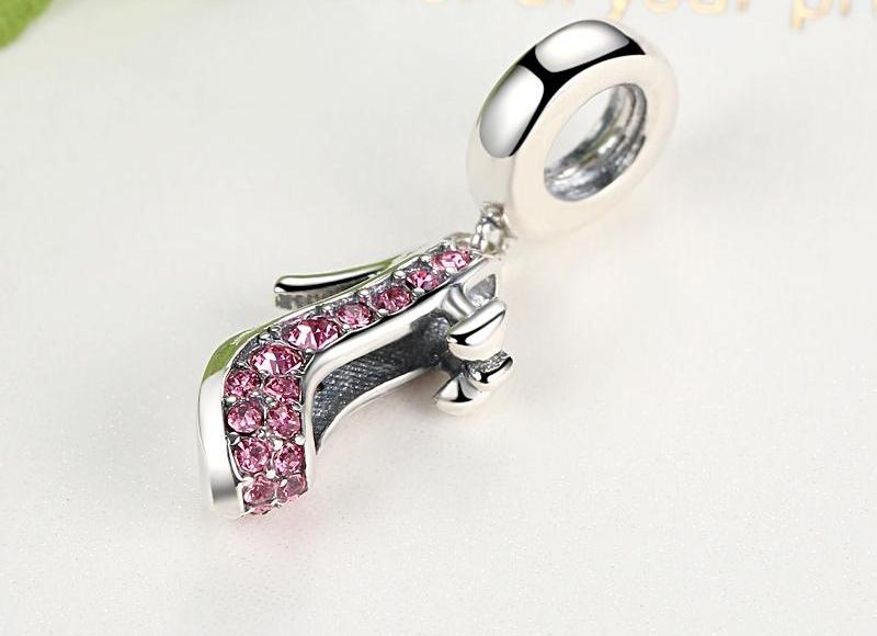 Silver and pink rhinestones stiletto charm beads, from 925 sterling silver and cubic zirconia rhinestones material. Fit for original Pandora bracelet and necklace pendant, an authentic, trendy, fashionable DIY jewelry gift for your friend or for your self.