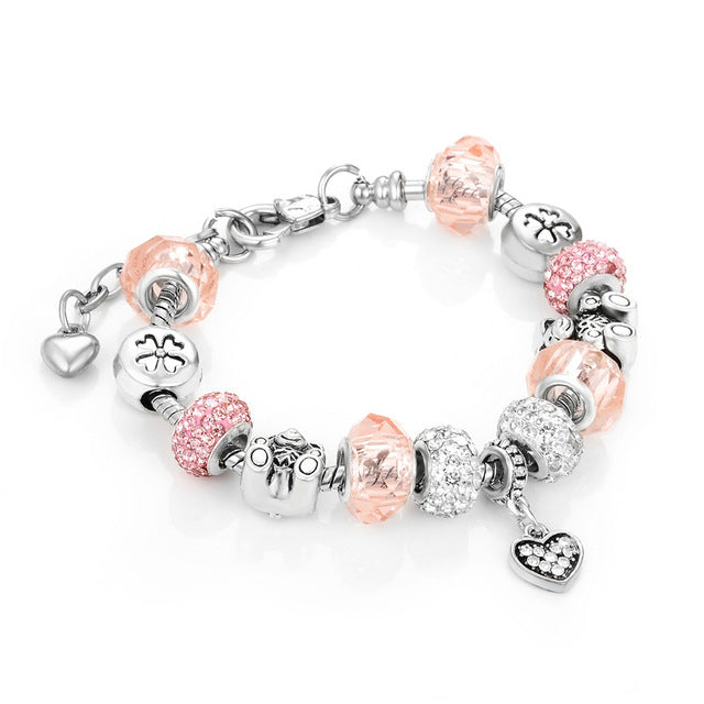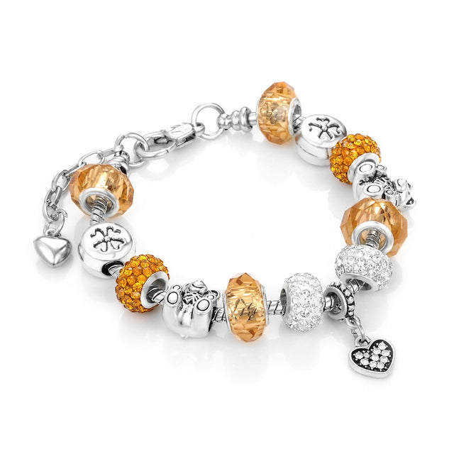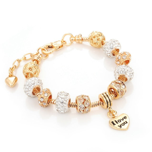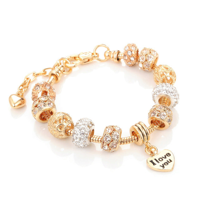 Vintage rhinestones with Australian crystal snake chain with a heart-shaped I love you engrave charm bracelets, with a lobster clasp type. A fashionable, very trendy and compatible to wear with any occasions or even going to work.