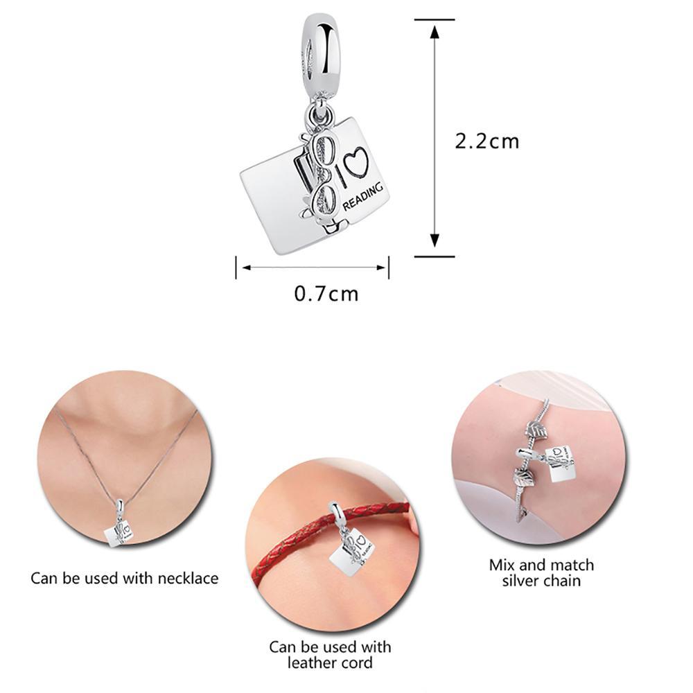 I LOVE READING Book Charm Beads a material of 100% 925 sterling silver, cubic zirconia, rhinestone, and crystals. This jewelry accord with the environmental requirement. Can wear in any occasion like wedding, engagement, anniversary, party or give it to a friend as a gift. DIY fashion mix and match up with a unique bracelet.