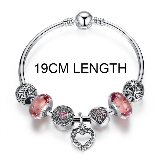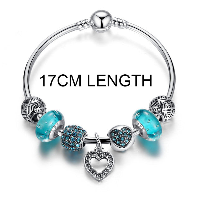 Silver rhinestones heart pendant bracelets with European rhinestones beads friendship charm bracelets with a hidden safety clasp. It is perfect for fashion that can fit any casual you wear. It is also, a perfect gift for your loved ones who love charm bracelets.